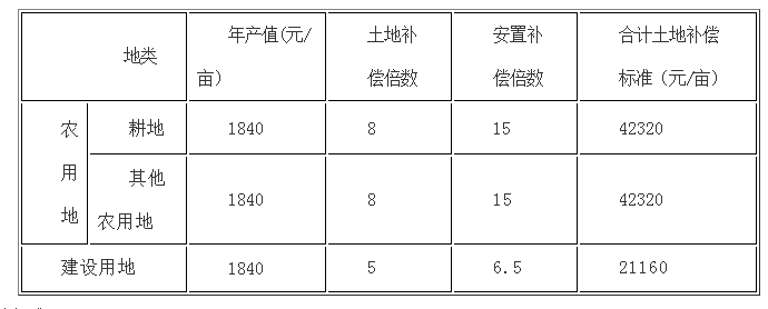 (一)土地补偿费和安置补助费标准