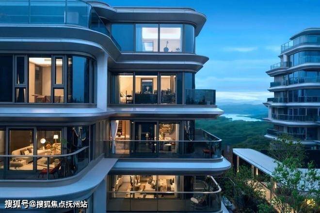 高层,全面屏落地窗+弧形玻璃幕墙的设计,将窗墙比拉到极致,就像一个“超宽屏取景器”,将太湖的风景框入其中。