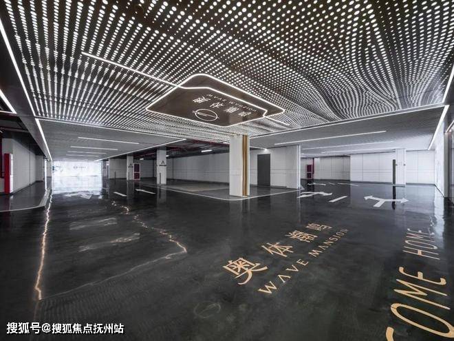 车库内部,地面采用了环氧地坪+金刚砂,部分主车道顶部是铝格栅+灯带的设计,有种一路指引归家的感觉。