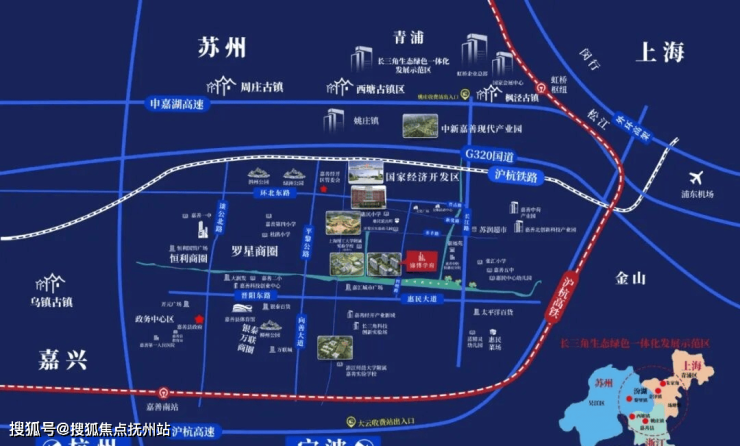 3⃣交通优势:身居城市核心枢纽,交通四通八达。15分钟车程到达G60高速及嘉善高铁站,沪杭高铁约23分钟直达上海虹桥,到杭州东站也仅约36分钟,出行非常便利;紧邻嘉善高架贯穿城市南北仅6分钟车程,独享便利。