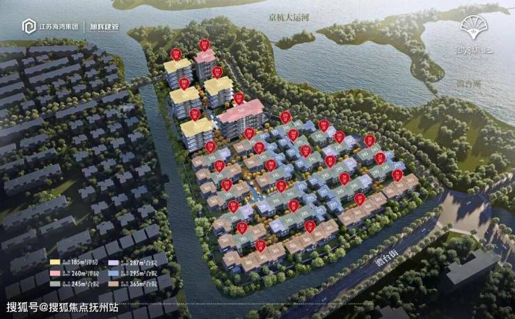 整个项目打造23幢102户3F合院+及6幢9F四代洋房,超低容积率1.02,三面水系环绕,仅196套。项目整体南北分区造园,北为洋房南为合院。