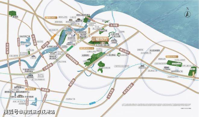 宁波云樾东方项目位于北仑小港季景路与渡口路交叉口向西约500米,由宁波东方南苑置业有限公司开发,定位为高端改善型住宅,主打公园奢居理念。