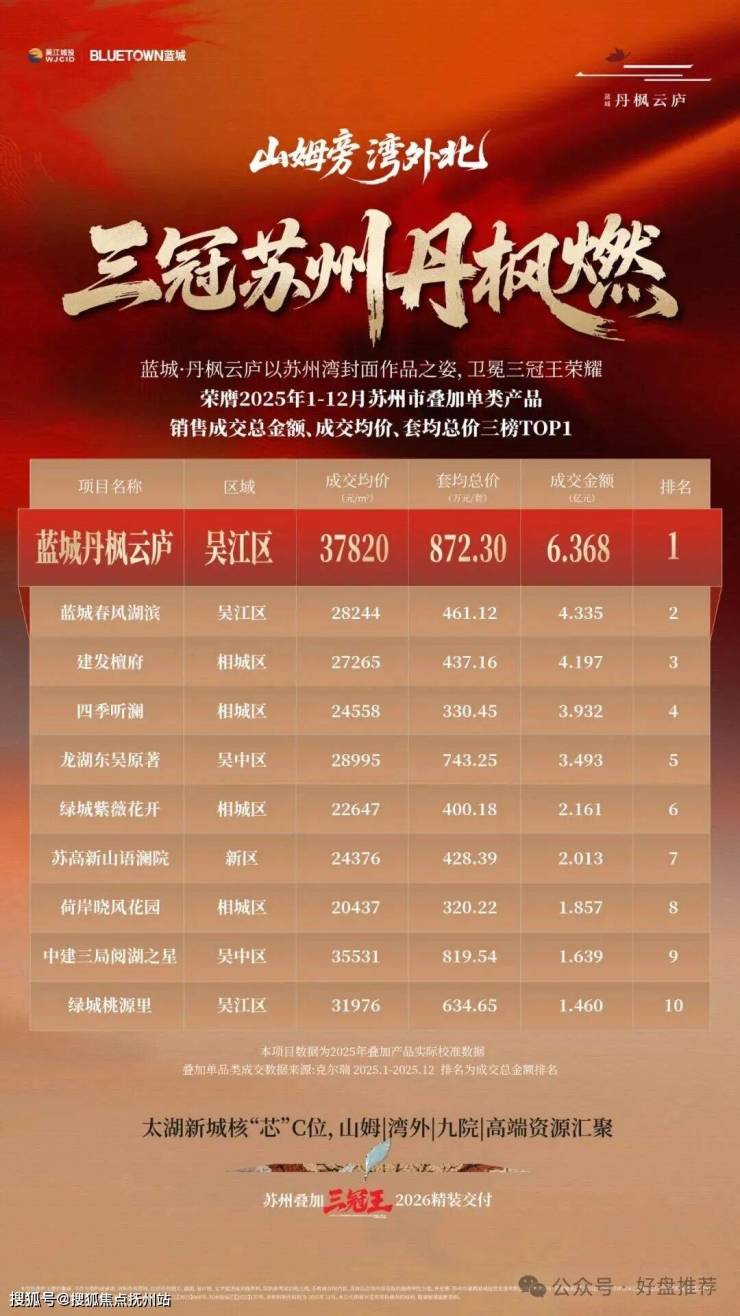 2025年的苏州高端改善市场,出现了一个值得关注的现象:在太湖新城核“芯”区,蓝城·丹枫云庐的叠加产品,以成交均价、套均总价、成交总额的全面领先蝉联市场“三冠王”!同时,全球零售巨头山姆会员商店的落子,与之形成了一场意味深长的“价值同频”。这不仅是单个项目的成功,更成为城市板块进化与高端居住逻辑的一个鲜活样本。
