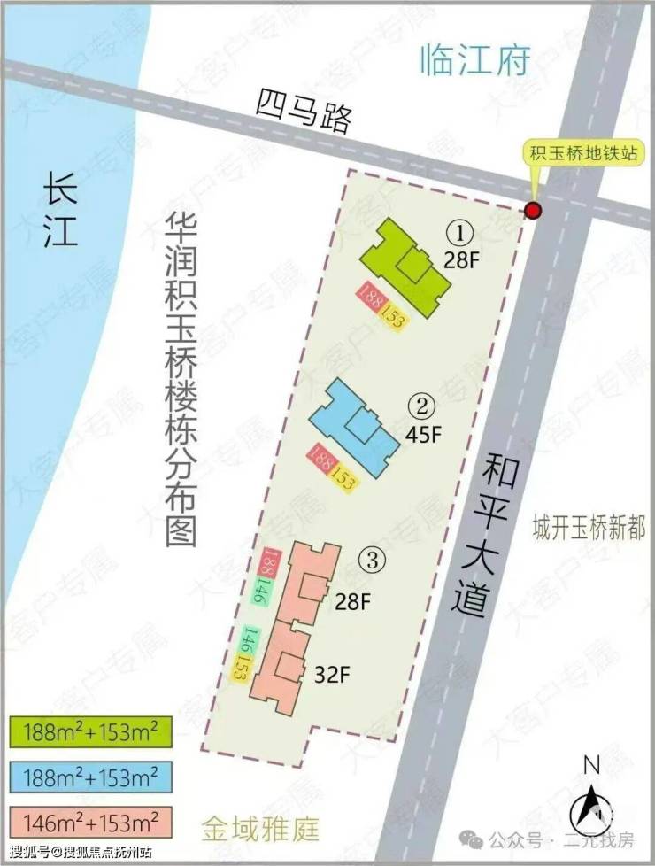 该项目一共三栋楼两个面积段,一号楼28层低区153m²高区188平,二号楼45层低区153m²高区188,三号楼分两个单元总高28与32层面积段为146和153和188的。该小区产品面积段:146㎡、153㎡、190㎡。起步146的所以都是偏改善群体客户