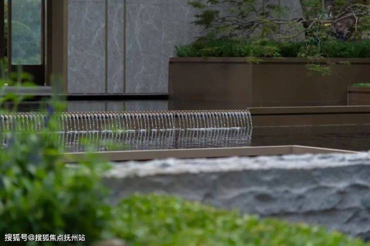 叠水迎宾水景迎面而至,潺潺涌动,层层递进,步履之间,使人置身于诗情画意的意境之中。