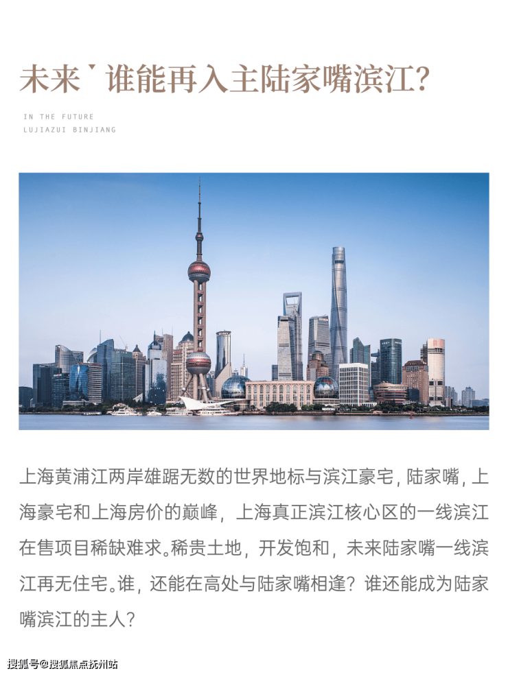 项目地处上海陆家嘴金融贸易区,近江约100米。陆家嘴被誉为中国的华尔街,更是上海的金融中心、经济中心和贸易中心,是全球金融中心,陆家嘴金融城,与纽约华尔街、伦敦金融城并称为世界三大金融中心,陆家嘴滨江,也成为并肩纽约中央公园、伦敦海德公园的顶级资本豪宅区,成为世界豪宅的中国封面。