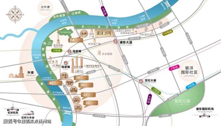 2KM国际商业圈:IFC国金、上海中心、正大广场、民生路太古里(在建)、浦东八佰伴、尚悦湾广场等国际知名商圈
