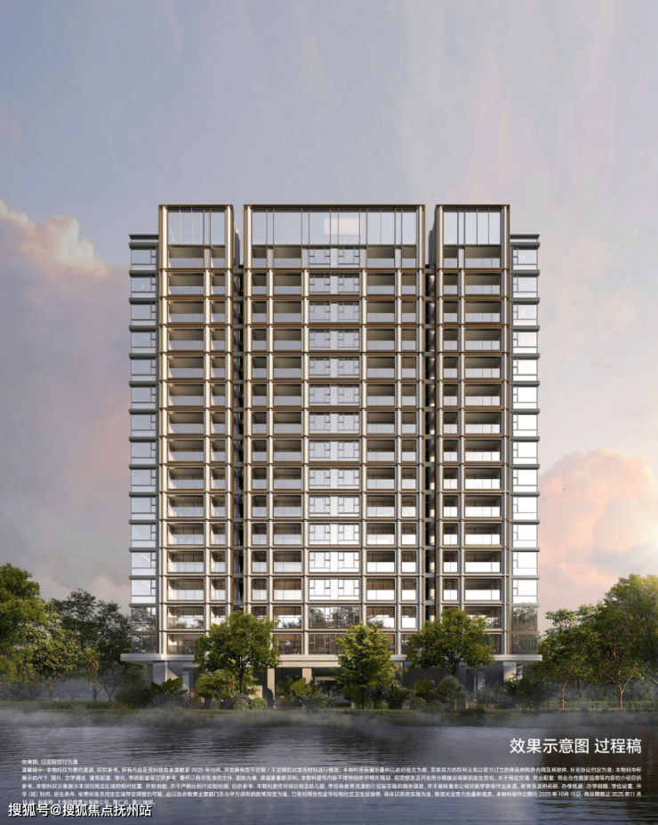 壹江臻邸亦摒弃昙花一现的潮流设计,以新经典风格打造跨越时间的作品。建筑立面溯源希腊柱式的古典秩序,注入现代设计语言,纵向柱式线条勾勒挺拔韵律,横向铝板舒展延伸,石材+铝板+超大玻璃的经典组合搭配竹节弧形仿石铝板,兼顾静谧与通透,形成极具辨识度的城市美学地标;
