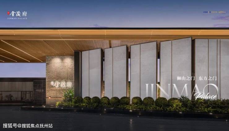 比造物更难得是初心,上层建筑的使命往往源于精神的动念。狮山金茂府的设计哲学,根植于“在地性”与“前瞻性”的平衡。南府门以苏州园林“框景”为灵感,通过金属格栅的镂空肌理,将远处的狮山晴岚与近处的香樟树影纳入画框,形成“一步一景”的诗意叙事。而门庭顶部采用悬浮式飞檐设计,以现代材质演绎传统屋檐的轻盈感,既呼应古城文脉,又彰显国际化的审美张力。