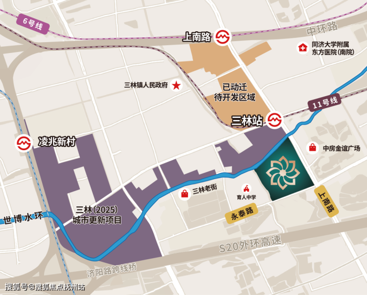 交通方面,项目与11号线三林站直线距离约500米,步行可达,可直达前滩、徐汇滨江、徐家汇等核心商圈。