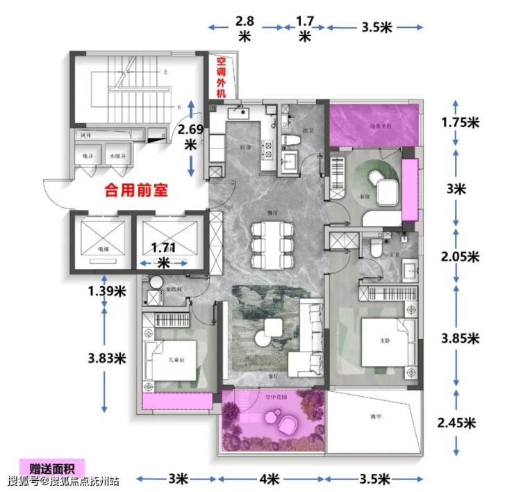 ④约17㎡空中花园,约6米挑高