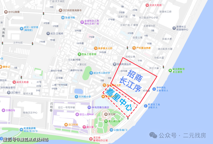 招商长江序位于江汉区龙王庙公园东侧,和嘉里中心挨在一起,属于汉口内环的好地段。