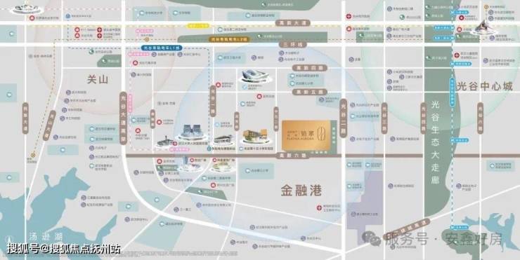 自驾:项目位于高新六路和光谷二路交汇处,属于金融股板块的中心地段,走三环可畅达全城。