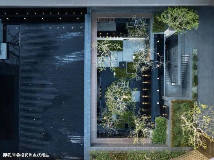 约400㎡静心水院选用黑金砂花岗岩铺底,营造出星级酒店般的静谧与雅致。