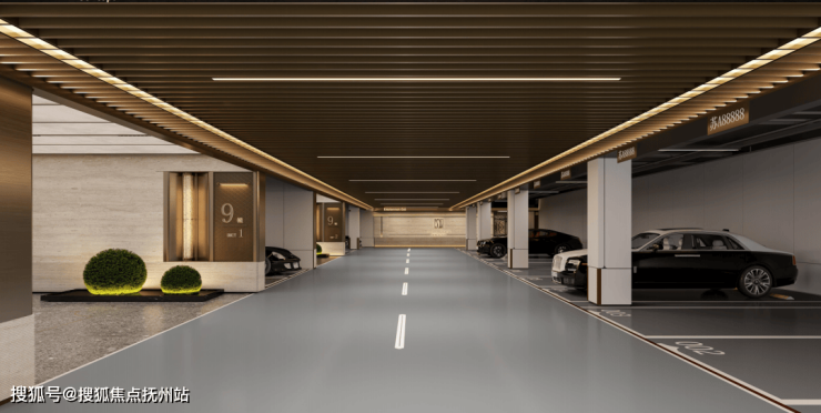 地库也没含糊,星空顶入户、铝板格栅车道、水磨石地坪、岩板灯光幕墙,归家动线有点仪式感。