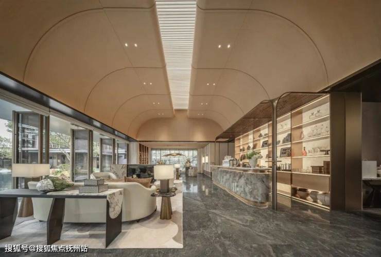 从一层的女王空间和艺术方舟,到负一层的棋牌室、茶室、健身房、恒温泳池等场景,再到三大下沉式庭院,相互渗透、相互组合,充满着移步异景、曲径通幽的中式美学。