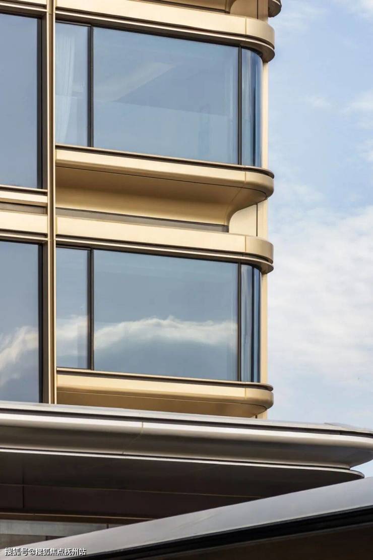 从建筑造型来看,最让人惊艳的是转角无柱设计。仿如九龙盘曲的弧面美学,非常适配窗外丰沛的景观资源。
