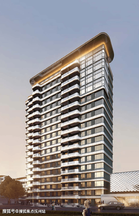 从图上来看外立面应该是铝板+大面积玻璃组成的,建筑顶部采用了市面上少见的弧形塔冠装饰,视觉效果比较丰富。