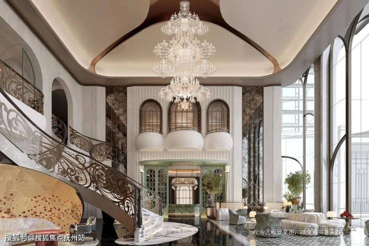 复刻厦门标杆项目建发・宸启瑞湖的海派美学基因:花瓣式艺术吊灯如飘落花雨点缀空间,南洋菱形釉彩地砖映出光影流转,Art Deco 线条与珐琅彩玻璃交相辉映,螺旋楼梯如当代雕塑般盘旋而上 —— 每一处细节,都是对卓越品位的精准表达。