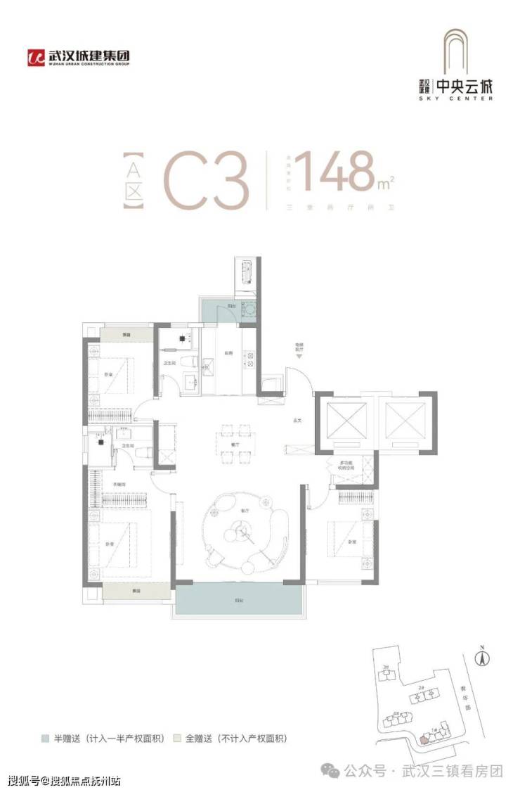 A区3号楼新品低公摊臻品四房:建面约181平米