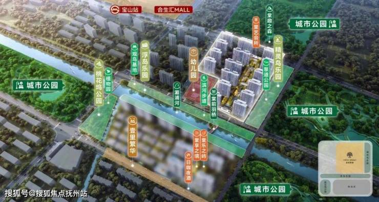 最后,该项目为高铁站上盖项目,住宅北邻河道、西接绿地,生态属性突出。周边配套在提升中,未来依托宝山高铁站形成城市副中心,具备长线价值。