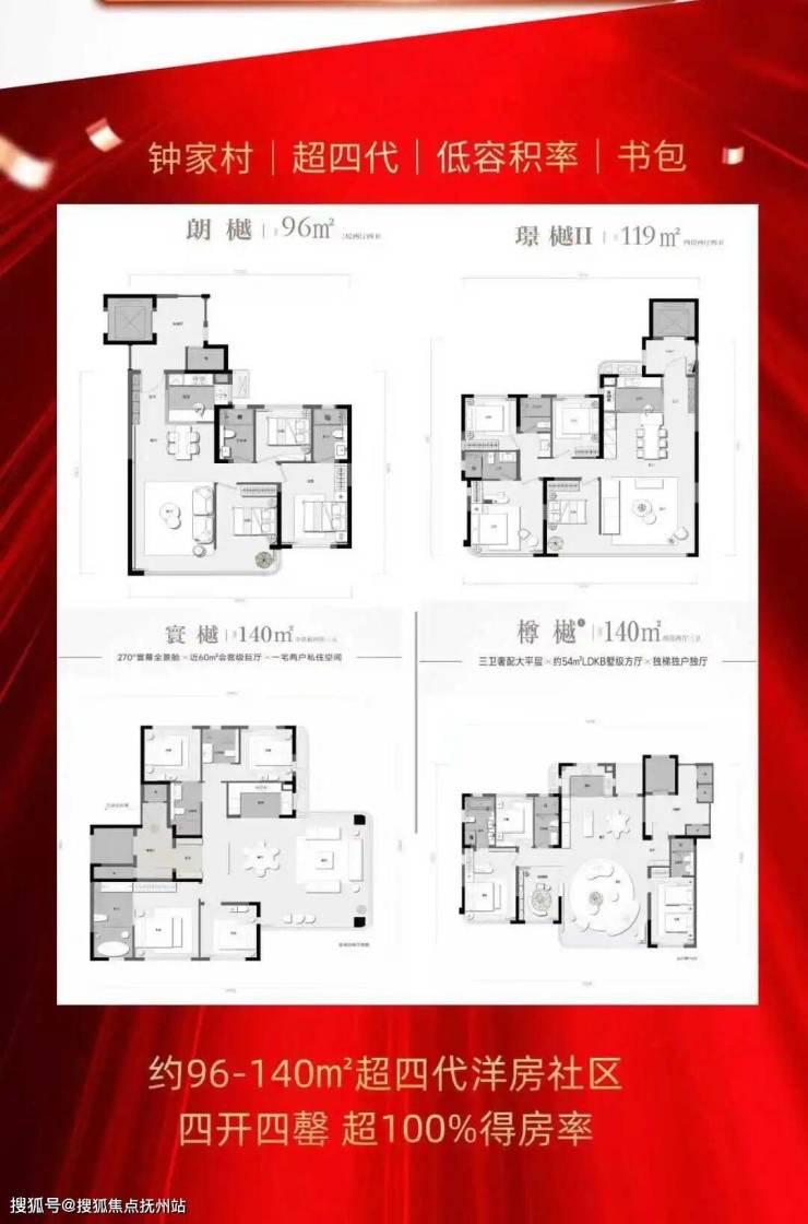 四期的3栋楼均为高层、小高层产品,其中10号楼25层,3梯4户;11、12号楼分别为16/17层小高层,面积为140平,2梯2户。户型设计非常好,大横厅,户户带独立电梯前室。