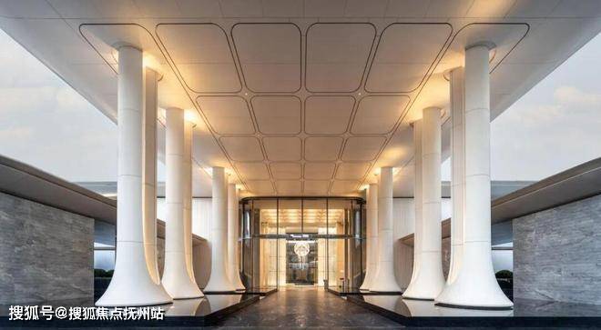 最令人心动的,是归家第一眼的震撼。入口处,8根纯白巨型立柱,将大堂空间向上整体托举至10.5米的高度。无论是天光倾泻,还是夜幕低垂,圆与方、天与地,都形成一种极具冲击的空间秩序感。