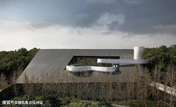 柔美的形态营造出“水”的意向;反光的材质、抬升的廊道空间体现出未来感与科技感。