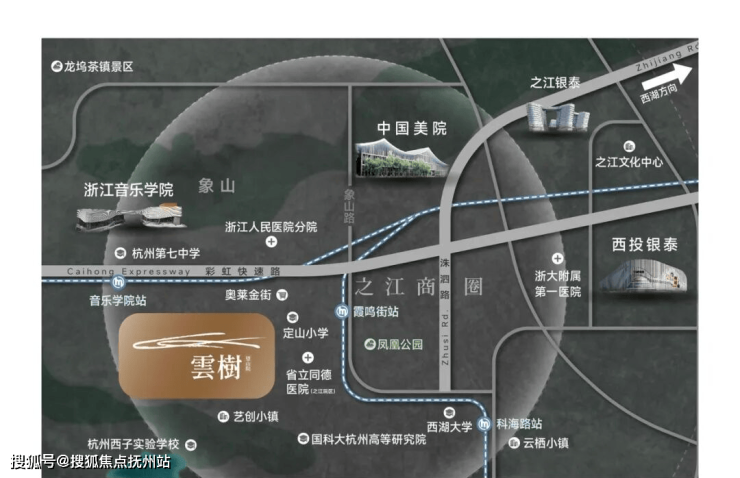 西湖群山浓荫掩映,之江芯传统墅居贵地,近邻音乐学院、中国美院。