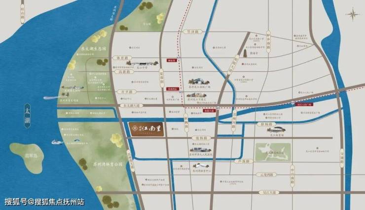西侧毗邻东太湖百里风光带,尽揽万顷太湖盛景与湾区繁华,约1200亩东太湖生态园环绕,尽享纯天然生态氧吧。
