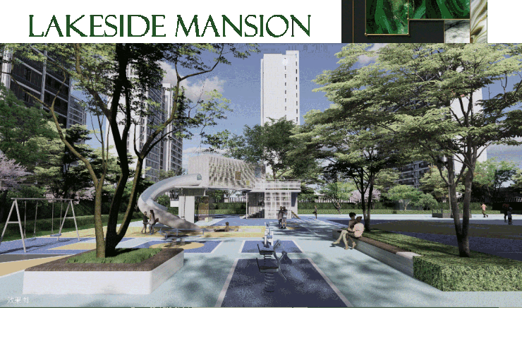 社区中央景观主轴,南北对称,在串联园区大小各楼栋出入口的同时,约450米的轴线也汇集了湖畔友邻日常休闲、娱乐、健身、会亲子的社交优选。