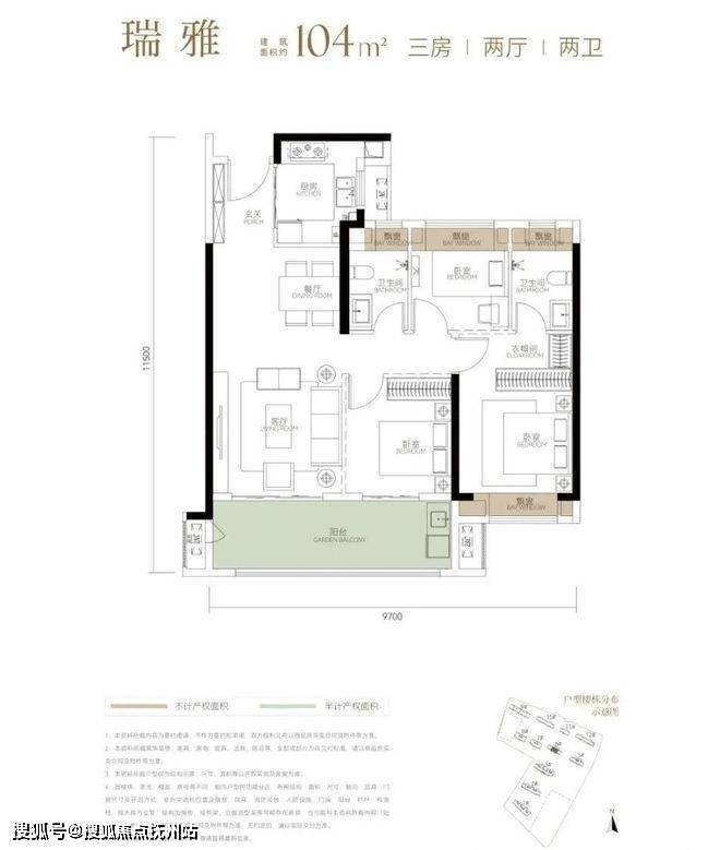 梯户比:1T2户(3个单元),得房率:95%
