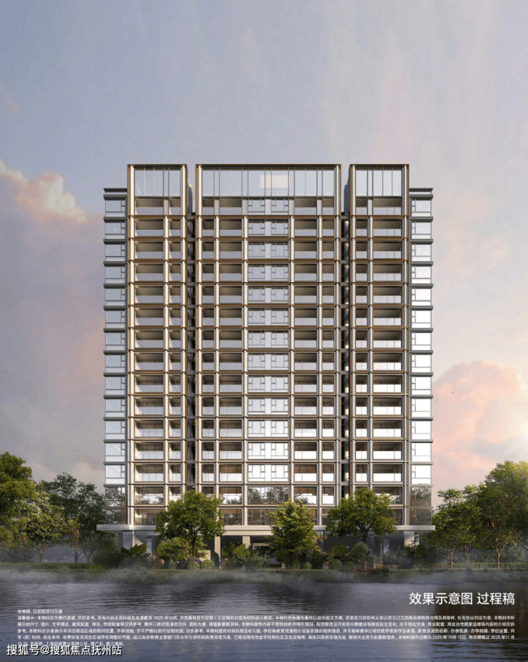 壹江臻邸亦摒弃昙花一现的潮流设计,以新经典风格打造跨越时间的作品。建筑立面溯源希腊柱式的古典秩序,注入现代设计语言,纵向柱式线条勾勒挺拔韵律,横向铝板舒展延伸,石材+铝板+超大玻璃的经典组合搭配竹节弧形仿石铝板,兼顾静谧与通透,形成极具辨识度的城市美学地标;