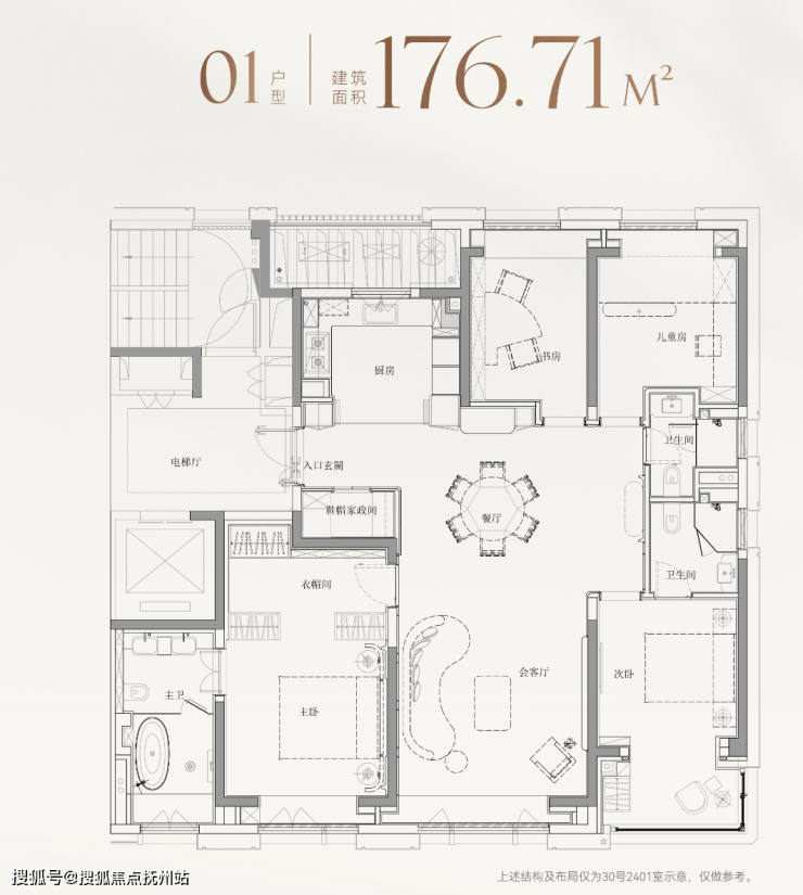 而建面约177㎡01室,则针对性地打造为4房格局,精准契合二胎家庭或三代同堂需求。
