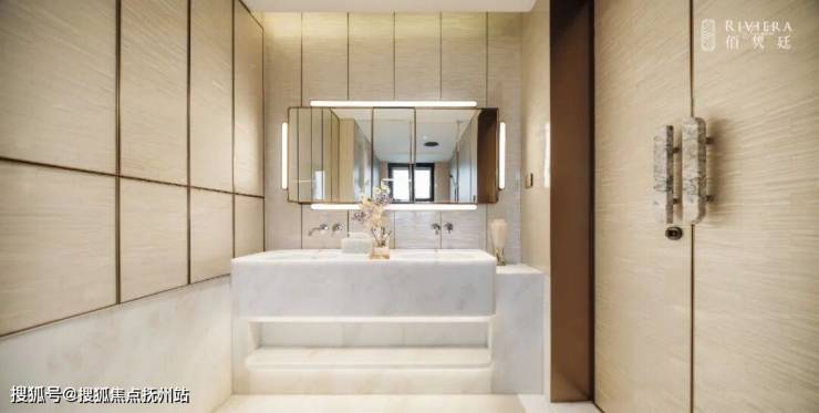 阳光满溢,尤其主卫罕见实现朝南采光,搭配奢华的双台盆、马桶间、浴缸与淋浴的“四件套”配置,尽显高端居住品质;