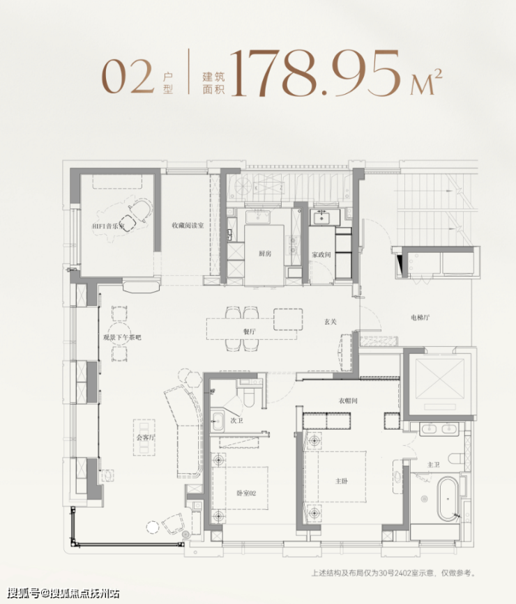 以建面约179㎡的边套为例,并未将北房间局限为常规卧室,而是灵活打造为HIFI音乐室与收藏阅读室,既可作为业主的灵感工作室,也能成为孩子的兴趣天地;