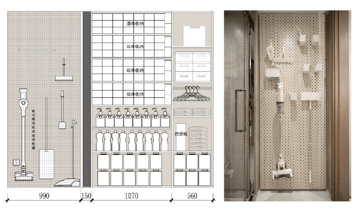 以家政电器、洗护用品、日用品一体化收纳模式,让家务轻松高效。
