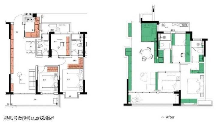 与此同时,结合深U厨房、S墙体、户内墙合理分配等方式,突破了常规百平“2+1房”的局限,进一步完善功能划分,实现了向真正“全能大三房”的华丽蜕变。