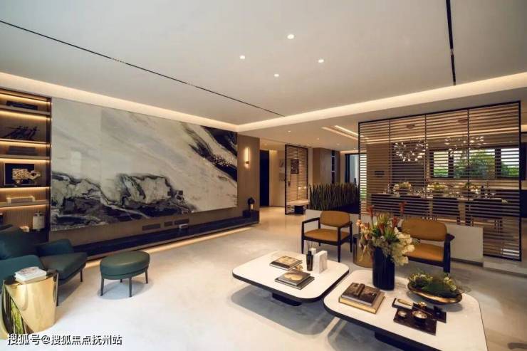 建面约350㎡四房三厅五卫下叠,由撑起中国豪宅半壁江山的李玮珉大师设计,客厅背景墙使用天然水墨纹石材,符合简约精致的文人气质。李玮珉大师开创性地将园林中的观景手法运用于室内,将餐厅抬高设计,并使用木质栅格分隔空间,将无锡寄畅园的亭台楼阁转化为现代居所,带来相互渗透的空间视觉,为室内带来生机。