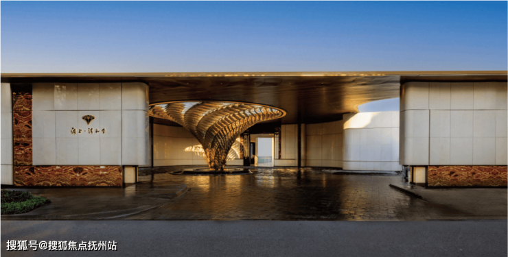 考究《周礼·考工记》古代规格定制“面阔九间”归家门庭,门庭外立面采用雅奢温润的建筑材料,辅以两侧具有仪式感的跳泉水景,共同构成了“贵雅清和”的城市界面。