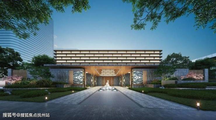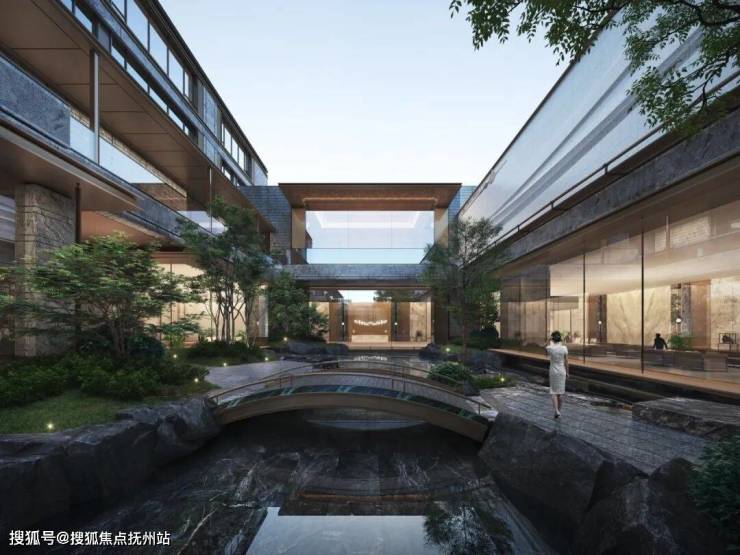 下沉式庭院:约1000方,复刻《溪山清远图》,从东侧“四水归堂”之门,经“十八学士”下沉庭院,景观设计层层递进,通过整面落地玻璃让下沉式景观和归家大门组合一整体,视觉冲击感强,悬挂户外泳池设计,地上地下互相成就景观视野。
