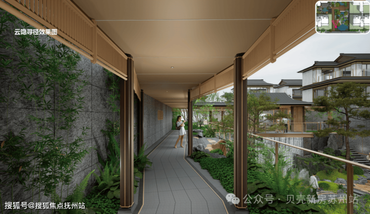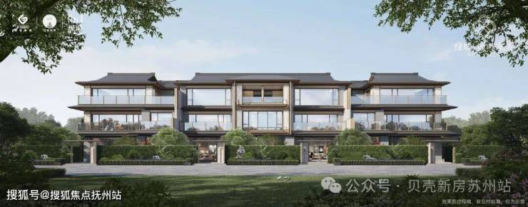 建筑面积约235-350㎡宋风合院,遵循“现代形、东方意”的庐系风格,提炼重檐、歇山顶等经典形制并化繁为简。
