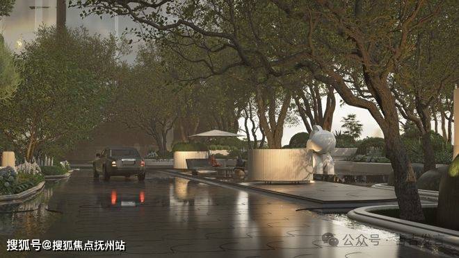 利用地库整体抬升2.5-2.7米,形成场地高差,创造出4层观江会所与3层架空花园的独特空间效果,以超前手法重构“一楼一岛景、浮岛花园”的独特居住体验。