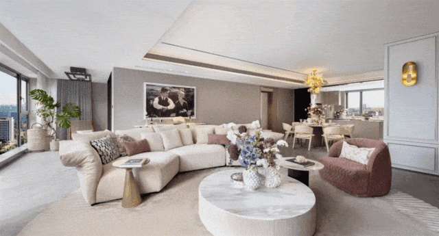 大户型特有的270°转角落地系统窗采用无结构梁设计,不仅使建筑外观成为艺术品,更让业主享受完全无遮挡的环幕视野。游艇塔冠造型的「澐翼之冠」,将游艇美学平移到空中,营造出空中游艇般的奢华体验。