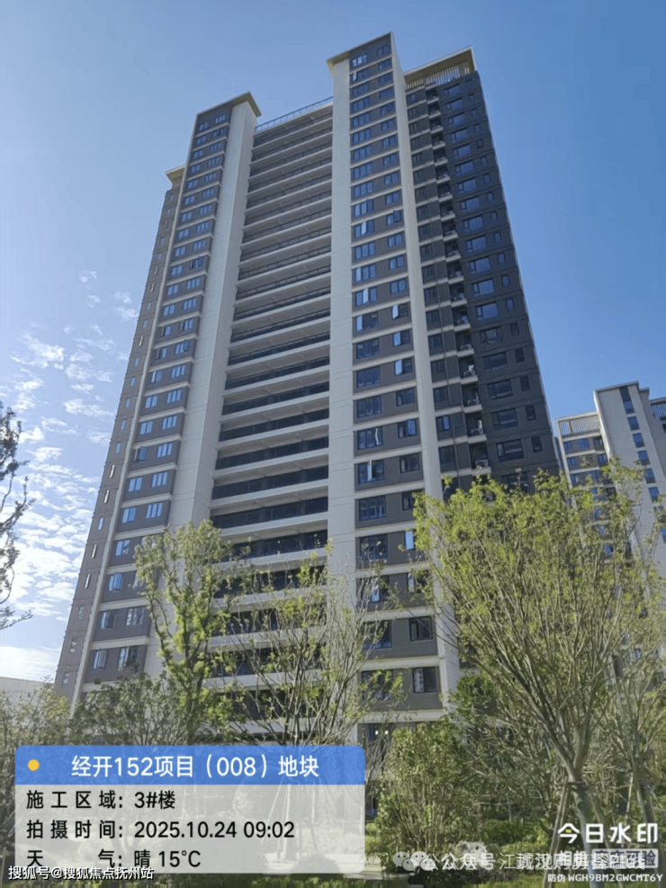 3号楼位于整个地块的中部,总高26层,1个单元,两梯四户布局,得房率约88%,虽然比不上准四代,但在三代产品里面也算非常优秀的了,交房时间是2025年12月底,还有不到一年的时间,也可以算准现房。