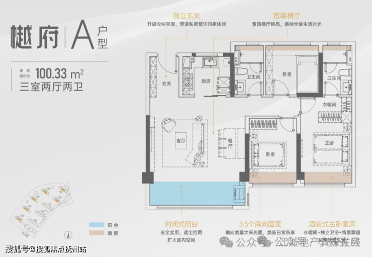 结合目前在售情况,项目在售最小面积就是100平三房户型。