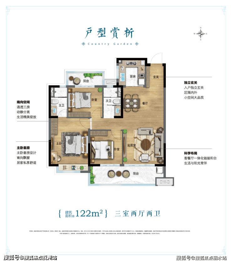 本次首开碧桂园珺尚府主推的是100㎡和122㎡两个三房产品。这两个户型的设计,足以展示碧桂园对于景山板块购房者的最大诚意。