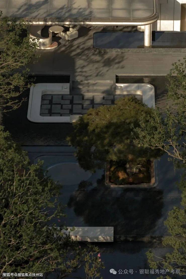 在前场景观体系,苏州招商序又围绕6幕归巢洄游序曲,创新提出将平面景观变成立体景观,通过超600㎡水院与后场归家庭院的嵌套、地面庭院与下沉庭院的垂直呼应、近两百岁名木羽毛枫的点缀,有层次地加强人与人、空间、生活的自然交往。
