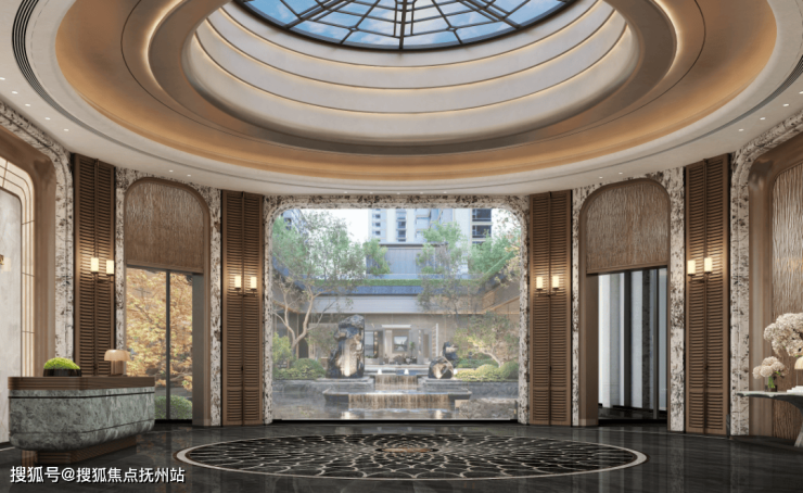 进入府门便来到了会所,会所内部最先感受到的就是直径超12米、高度超5米的圆形归家大厅。