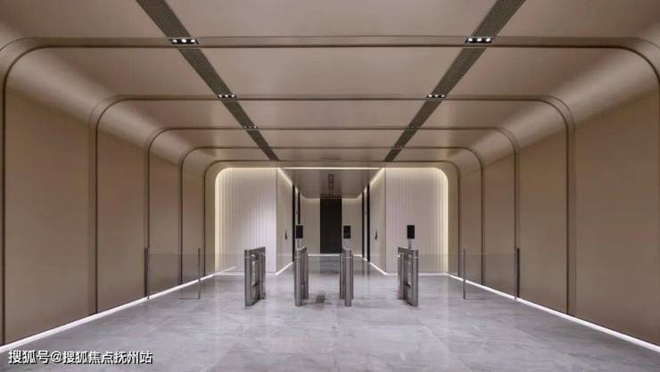 大堂,是企业向访客呈递的“第一名片”,D座大堂以“星轨”为设计理念,约10米双层挑高,超大落地玻璃,打造总部办公的出入体验,加码企业实力和形象。